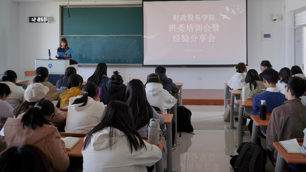 为提升班委团队的综合素质和工作能力,促进班级管理工作的高效开展,10月29日,财政税务学院举办班委培训会暨经验交流会,财政税务学院党委副书记滕晖、23级辅导员程佳、24级辅导员李昕鑫出席,23级学生代表受邀分享经验,24级全体班委参会。