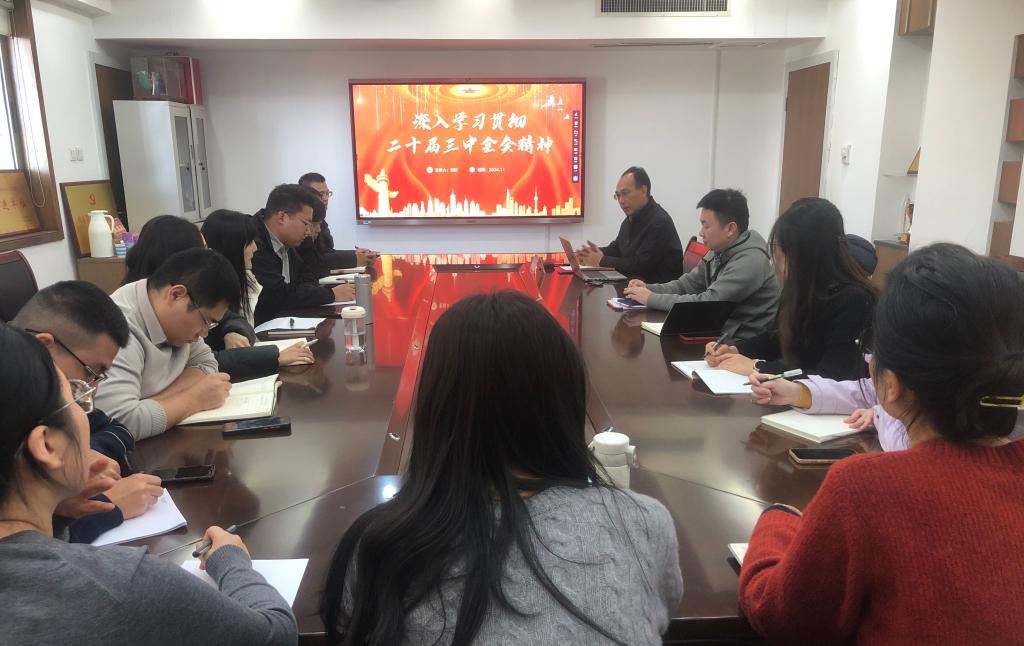 11月28日下午,财政税务学院党委书记刘波在舜耕校区办公楼708会议室宣讲党的二十届三中全会精神。学院新聘任本科生班主任,教研室主任、副主任参加本次活动。