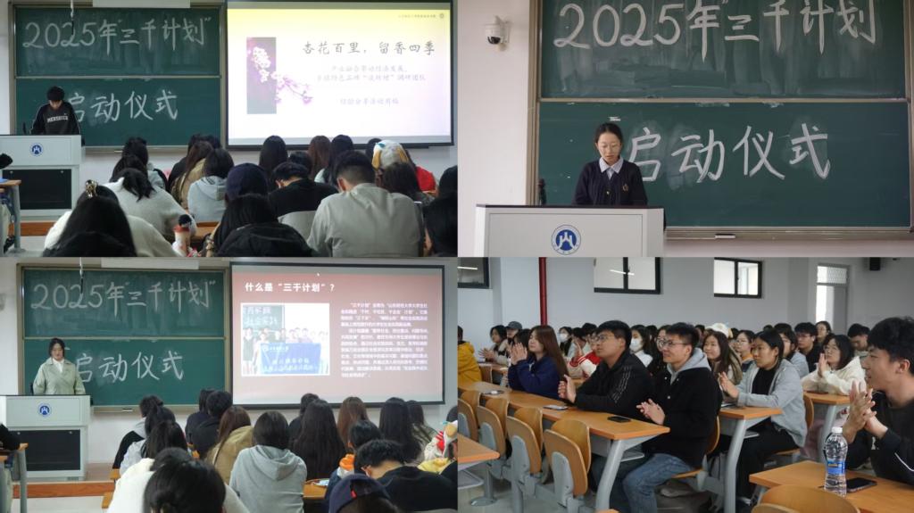 为进一步引导财税学子在社会实践中受教育、长才干、做贡献,3月27日,学院于圣井校区7号教学楼举行2025年社会实践“三千计划”活动启动仪式。学院党委副书记滕晖,辅导员程佳、李昕鑫出席, 23、24级部分学生代表参加本次活动。