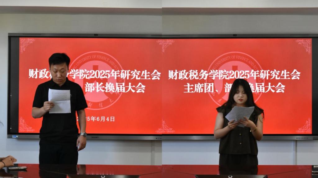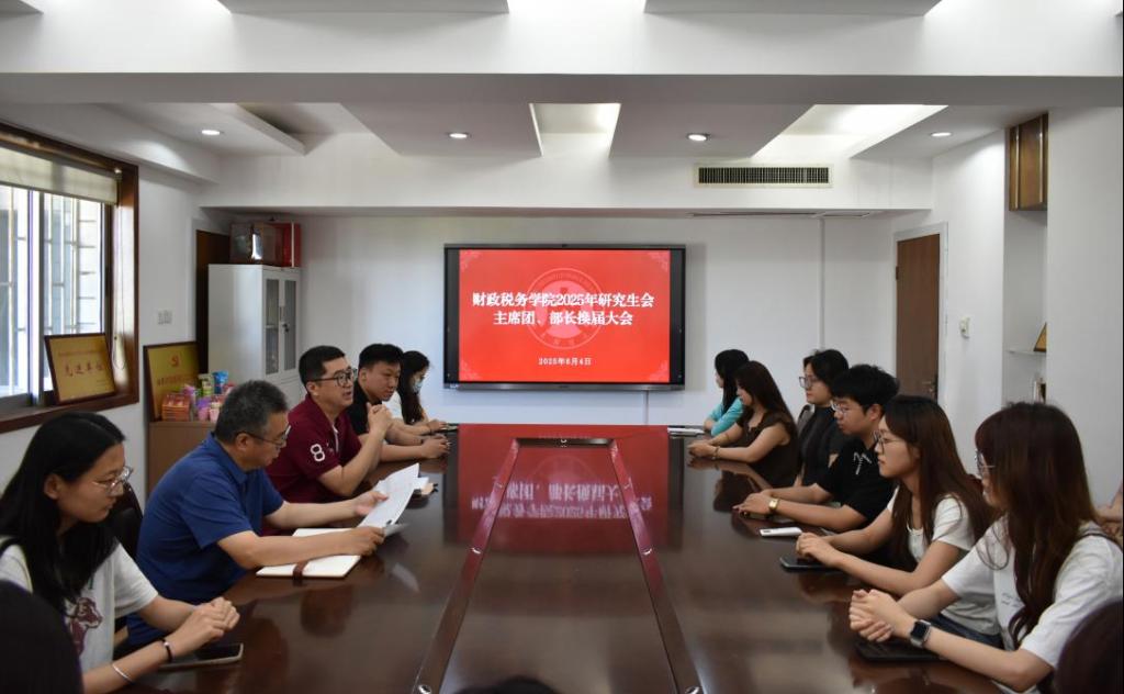 6月4日,财政税务学院2025届研究生会换届大会在舜耕校区顺利举行。学院党委副书记张代宝、研究生辅导员王正一出席会议,2024届研究生会主席、2025届主席团成员、部长以及在校主要学生干部参加会议。会议由王正一主持。