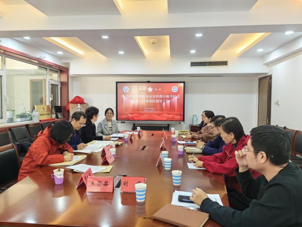 首先,李森对检查组一行表示热烈欢迎,并简略介绍了学院情况。赵宝廷从课堂教学规范管理、教学质量监控、教师授课情况、师资培训、教学研究、师生座谈等九个方面向检查组汇报了我院2025-2026学年第一学期期中教学检查自查情况、近来取得的教学业绩和存在的不足等。其次,检查组与我院学生代表就教师授课、网络平台使用、学生课堂出席率、过程考核依据等方面举行了座谈。再次,检查组各成员按照既定分工和程序对学院的试卷与试题、毕业论文、教学日历与教案等教学资料进行了细致检查,同时,与教师代表围绕“规范课堂教学秩序、提升课堂教学质量”核心主题,就如何有效组织课堂教学、提高学生的到课率、前排就座率、抬头率等问题展开了热烈的讨论。最后,检查组召开教学检查反馈会。检查组充分肯定了我院在师德师风建设、教学日常管理、教学研究、服务学生等方面所做的扎实工作,同时也指出了在试卷命题结构、试卷档案管理、毕业论文规范等方面仍存在一定不足,并提出了一些建设性意见。