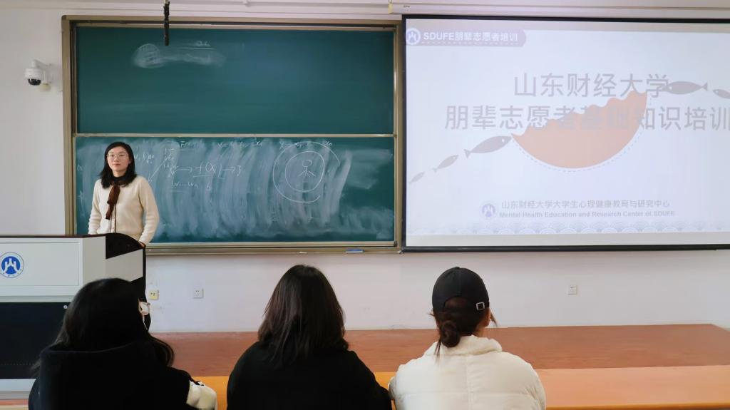 为进一步深化心理健康教育工作,充分发挥朋辈志愿者在学生群体中的桥梁与纽带作用,11月20日 ,我院在章丘校区7214教室举办2025级朋辈志愿者基础知识培训讲座。本次讲座由辅导员程佳主讲,2025级全体朋辈志愿者参与培训。
