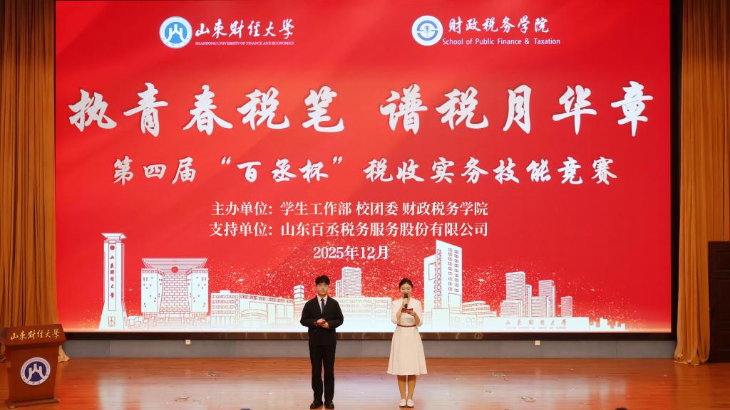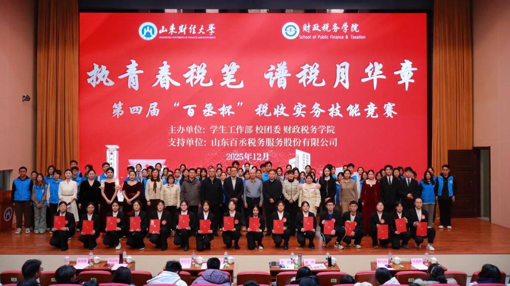 12月11日,由学生工作部、校团委、财政税务学院与山东百丞税务服务股份有限公司联合举办的第四届“百丞杯”税收实务技能竞赛在章丘校区图书馆报告厅举行。山东百丞税务服务股份有限公司总经理董华、副总经理景波,学校相关师生代表共400余人出席本次活动。