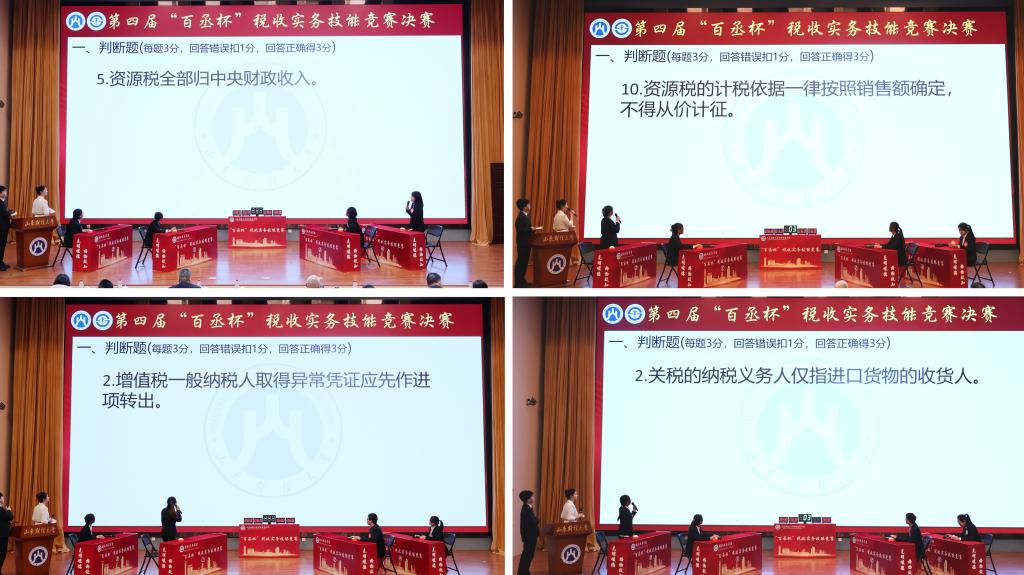 比赛现场紧张激烈,精彩纷呈。上半场抢答环节,选手们思维敏捷、应对如流;下半场案例分析环节,各选手紧扣税收实务,精准剖析、策略清晰,展现出扎实的专业功底与良好的逻辑分析能力。活动中,宣讲团宣讲《财聚国脉·税润初心》与舞台剧《课堂一梦入税史》穿插上演,以艺术形式诠释财税人的使命担当与税制演进历程,为大赛增添了浓厚的文化氛围。
