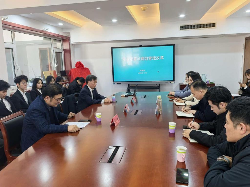 12月14日下午,财政税务学院2025年第6期财税学术论坛(总第75期)暨“财政科学管理与预算绩效专题讲座”在舜耕校区顺利举办。山东省财政厅预算绩效管理处原一级调研员周象民、河南省濮阳市财政局二级调研员张耀民应邀作了专题报告。学院院长李森主持了讲座。副院长赵宝廷,教师代表张晓蕾、孙超,预算绩效管理第三方机构代表宋新宇,我院部分研究生、本科生等参加了本次讲座。