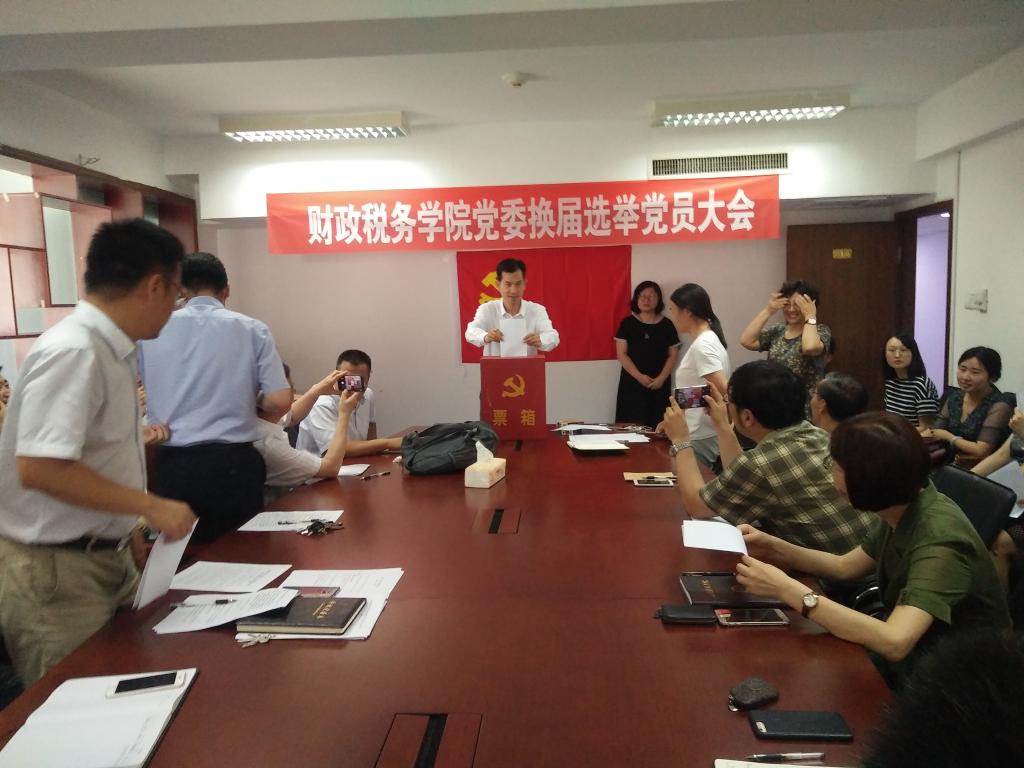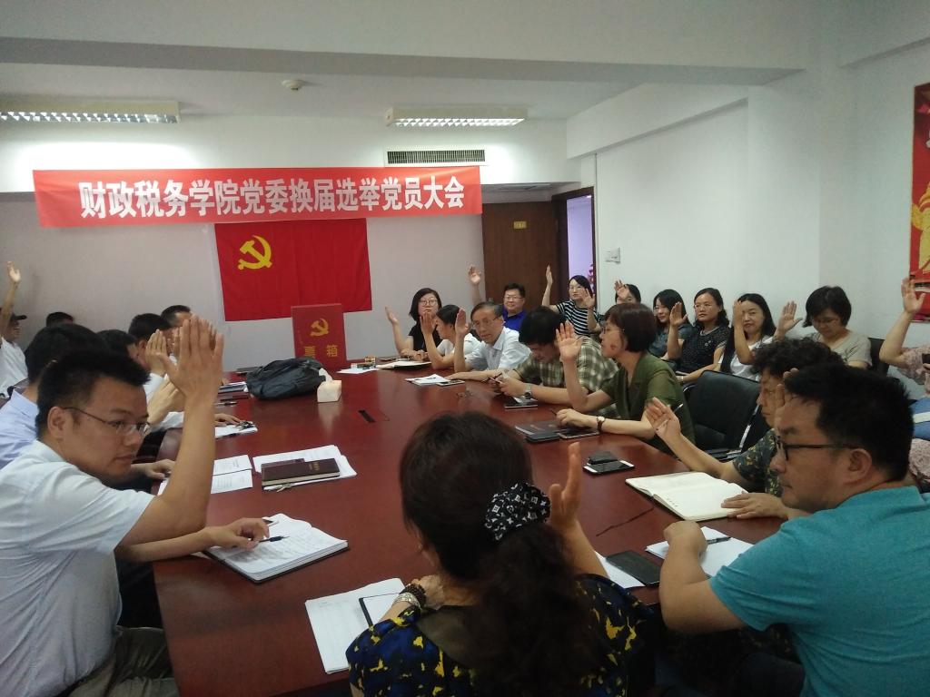 大会议程第二项,党委书记李玉成主持选举新一届中共山东财经大学财政税务学院委员会。党员表决通过了选举办法及监票人、计票人建议名单,并宣布下一届委员会委员名额和候选人名单。大会以无记名投票、差额选举的办法选举产生了新一届中共山东财经大学财政税务学院党委会委员。李玉成、谢申祥、张代宝、梅丽萍、赵宇、马恩涛、王静当选为新一届党委委员会成员。