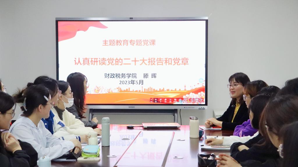 为深入学习贯彻习近平新时代中国特色社会主义思想主题教育,5月4日下午,财政税务学院在圣井校区7313开展了题为“认真研读党的二十大报告和党章”的主题教育专题党课。专题党课由财政税务学院党委副书记滕晖主讲,学院党委组织员李子云和学院本批次党员发展对象参加了此次党课学习。
