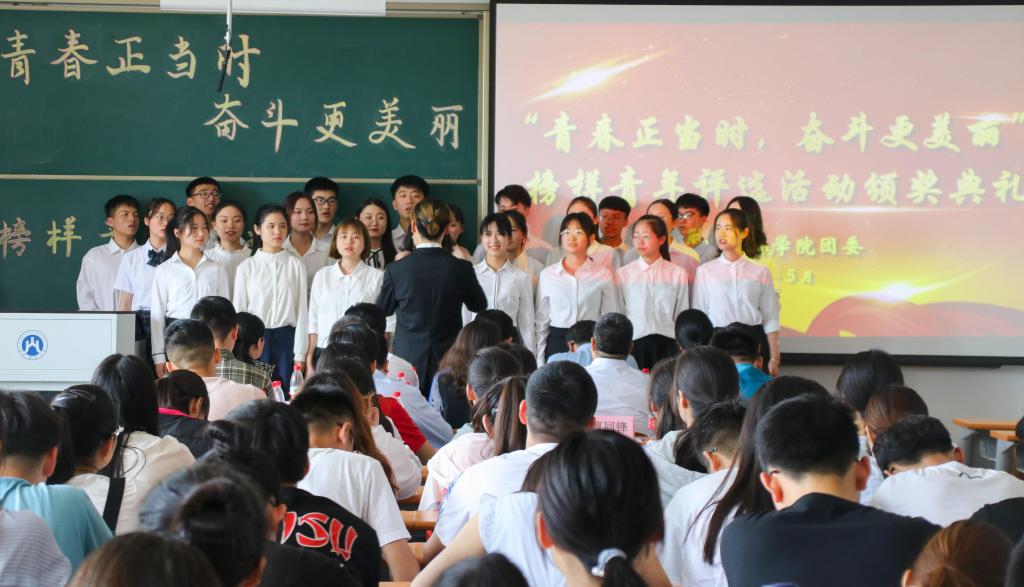 在颁奖典礼之前,学院进行了规模盛大的榜样青年评选。本次榜样青年评选奖项共有十一大类,分别为:励志笃行榜样青年、敬业敏学榜样青年、特优模范榜样宿舍、博闻强识榜样青年、社会实践榜样青年、志愿服务榜样团队、校园文化榜样青年、勇攀高峰榜样青年、宣传活动榜样青年、升学留学榜样青年、就业先锋榜样青年。