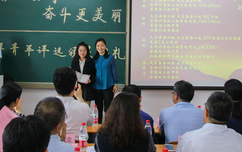 接下来颁发的是“校园文化榜样青年”奖项,由来自2017级税收学一班的刘丰华获得。他积极组织并参与了各项校园文化活动,在文体生活中起到了良好的模范带头作用,在丰富同学们课余生活的同时也逐渐提高着自己。