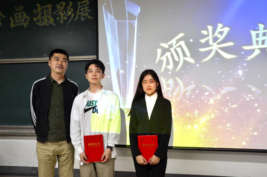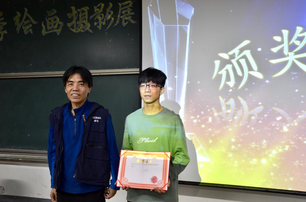 活动最后,综合了微信投票结果和评委们的评审结果,齐哲浩同学荣获一等奖和最佳人气奖,苟舒娴和宋荣欣同学荣获二等奖,王志勇、朱晗瑶、庞奕萱同学荣获三等奖。王志勇同学凭借他极富想象力的创作获得了最佳创意奖。武普照老师、张建勇老师、王正一老师分别为获得一、二、三等奖的选手颁奖。学生会新媒体中心主任郑昊晨、第一届绘画摄影展最佳创意奖得主刘畅分别为获得最佳人气奖和最佳创意奖的同学颁奖。