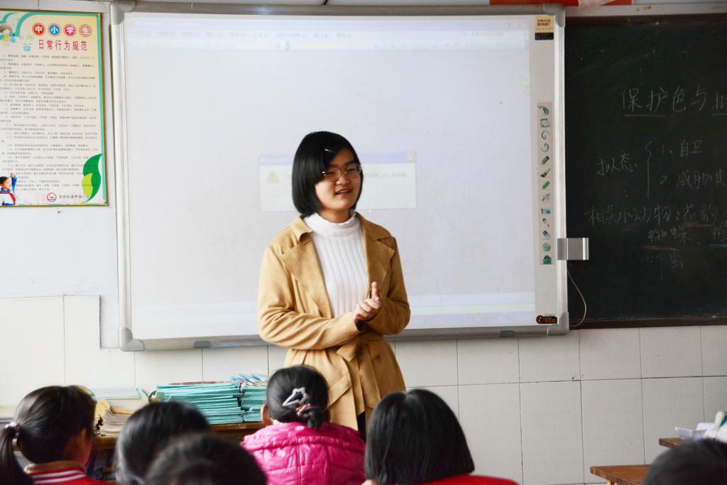 活动伊始,支教队伍热情满满地奔赴李福小学。学生志愿者们的到来得到了小同学们的热烈欢迎,小同学们端坐着,一双双明亮的眼眸里充满着对知识的渴望。在五年级一班,志愿者以隐身的超能力和猜变色龙的谜语开题,使同学们大致了解了动物拟态与保护色的现象,增强了同学们的兴趣。随后,志愿者让同学们采取小组合作、分组讨论的形式,请小组派代表举例分析了生活中具有拟态与保护色现象的动物。志愿者通过详细的讲解,使大家明确了二者之间的区别。在讲课的同时,志愿者把同学们分成五组,让他们通过答题互相竞争。同学们踊跃举手回答,在活跃的课堂气氛中享受了学习的过程。