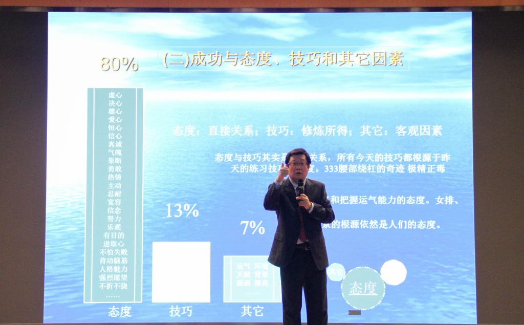 本次活动旨在帮助同学们端正态度,确立正确的人生目标,保持积极、自信的态度迎接人生的机遇与挑战。在同学们热烈的掌声中,本次讲座拉开了帷幕,李永刚书记以“态度决定一切”为题,向同学们做了详细生动的演讲。
