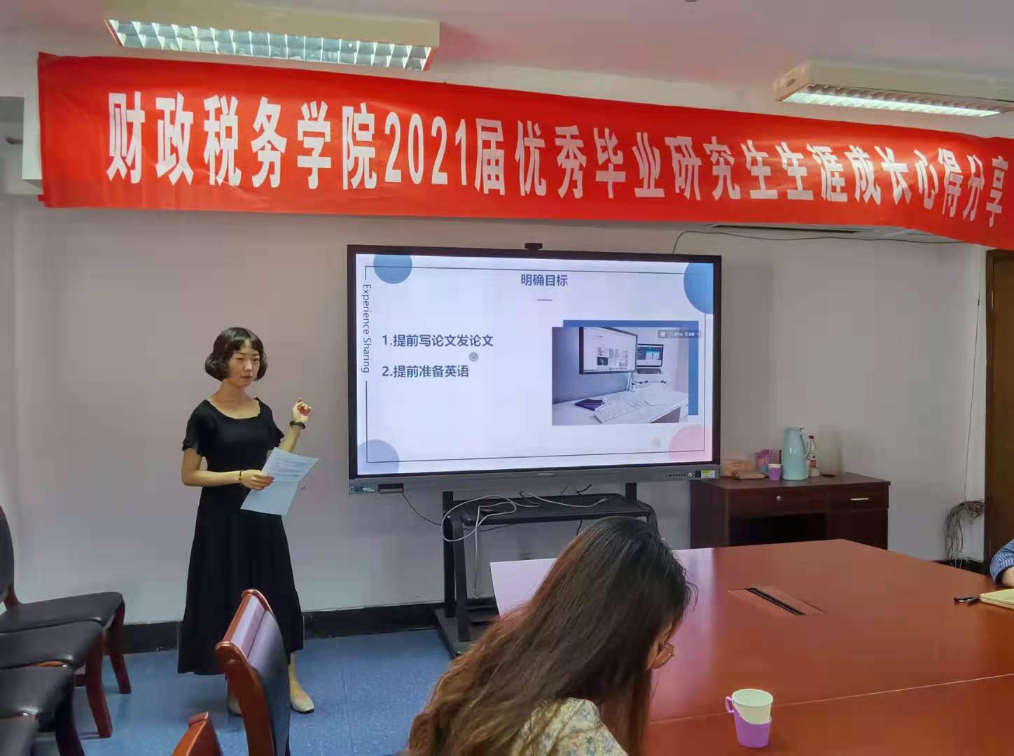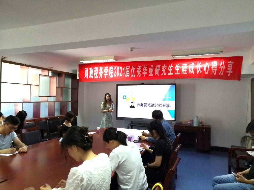 5月28日,财政税务学院2021届优秀毕业研究生生涯成长心得分享会在舜耕校区行政楼816举办。本次活动由我院毕业年级优秀研究生袁月和费遵颖为大家进行了考博与考公的经验分享,财税学院税务硕士教育中心主任兼副院长李森老师出席了本次活动。