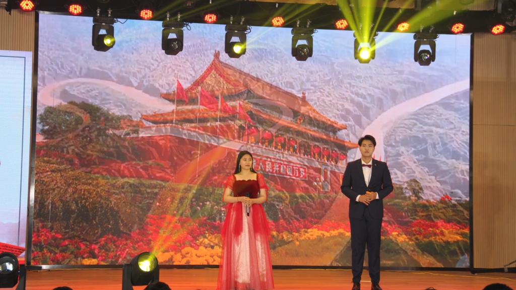 在主持人声情并茂的介绍下,两位吉他少年登上了舞台,他们带来的《向往》表达了对中国共产党未来发展的美好期盼;诗朗诵《党旗颂》以深情的朗诵道出了对于党旗的热爱;古风歌舞节目《云梦九歌》不仅让同学们看到了我国传统的汉服之美,而且进一步加深了同学们对于中国传统文化的认识;歌曲《少年派》与《星火燎原》以串烧的形式向观众们展示了新时代财税少年的青春与活力;情景剧《狱火重生》一改传统风格向观众们展示了革命时期共产党人面对敌人时的英勇顽强与刚正不屈;男女二重唱《天地在我心》中两位歌手以深厚的歌唱功底向在场观众展示了新时代财税青年宽广的胸怀与气魄;相声表演《双字意》以诙谐幽默的语言展示出中国传统文化的博大精深和中国语言文字的丰富多彩;舞蹈《闪耀》与《醉太平》分别以现代舞和古典舞的形式为观众们带来了一场视觉盛宴;武普照老师的独唱《我爱你中国》使现场的气氛更加热烈,在场老师与同学们被武普照老师深情的演唱所感染,深深地体会到了武普照老师对于祖国的浓浓爱意;走秀节目《花样年华》向观众们展示了当代财税学子们的风貌;大合唱《天耀中华追梦人》唱出了对中华民族伟大复兴的美好祝愿,也唱出了追梦人为实现中国梦的坚定决心。节目中穿插了由在场领导主持的抽奖环节,紧张的抽奖环节为晚会增添了几分趣味。