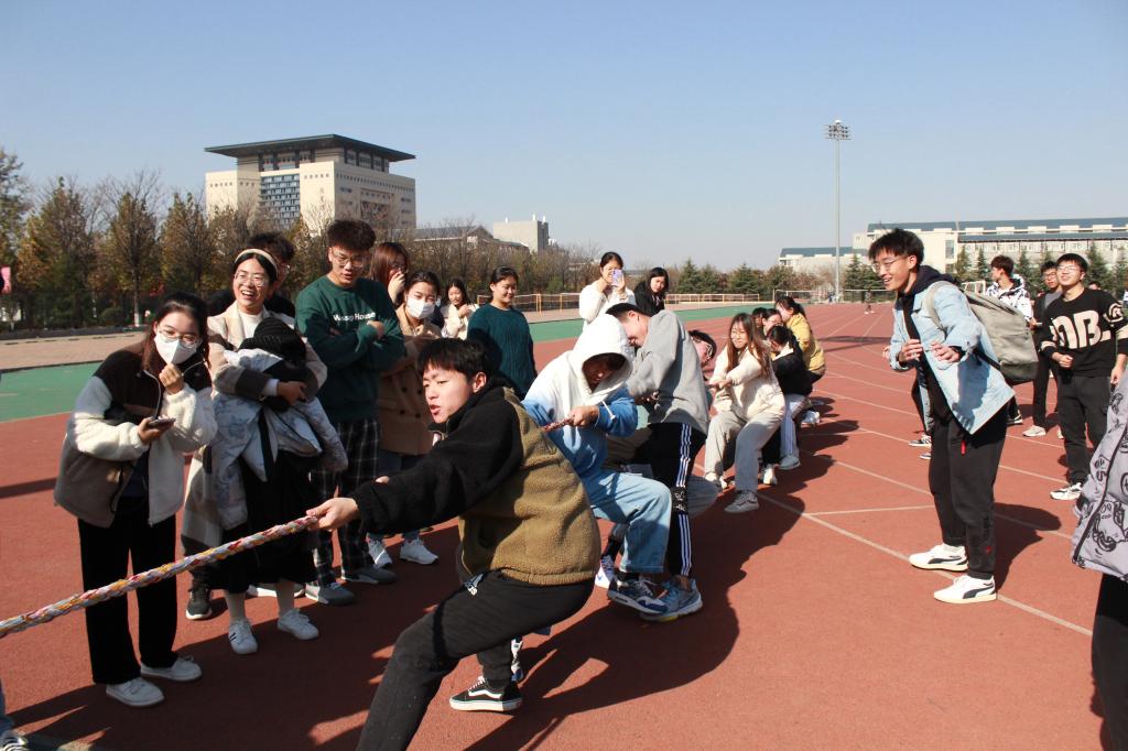 最后一个项目是拔河,伴随着“预备——,开始!”,操场上响起了震耳欲聋的喝彩声,运动员们屏息盯住中间的那条红丝带,每个人都使出了全部的力气。红丝带因为双方队员的拉扯开始摇摆不定,尔后逐渐偏向一方,最后越过界线,一方获胜!比赛结束之后,他们顾不上揉搓因与麻绳摩擦过度而泛红的双手,纷纷拥抱嘶吼,他们的兴高采烈不仅仅是因为比赛的胜利,还有比赛过程中每个人的拼尽全力。