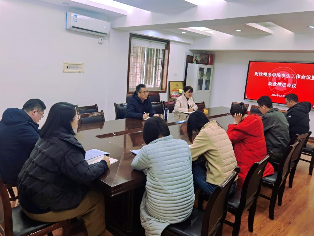 3月25日下午,财政税务学院在舜耕校区办公楼708会议室召开学生工作会议暨就业推进会议。学院党委副书记张代宝、滕晖出席会议,全体辅导员参加会议。本次会议由滕晖主持。