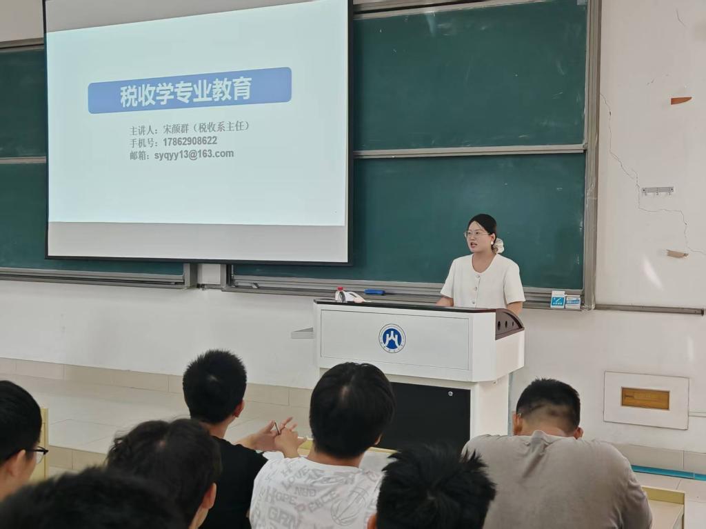 税收系主任宋颜群则向2025级新生介绍了专业所属应用经济学科的发展潜力,以及依托校内外实训基地提升实践能力的路径。此外,她还展示了我院学生在挑战杯等大赛上取得的优异成绩,激励新同学们以优秀学长学姐为榜样,将专业知识转化为实战能力,成长为数字时代所需的财税复合型人才,为职业发展和国家财税事业奠基。