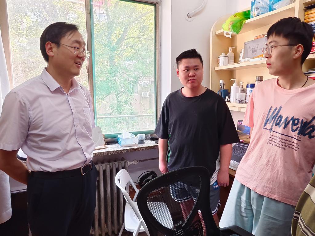 王敬政一行来到舜耕校区4号公寓和12号公寓,与同学们亲切交谈,详细询问大家就业去向和生活情况。在交谈过程中,就同学们存在的困惑和关心的问题,现场做了详细解答。了解到艾衍睿同学选择参加研究生支教团,12-508宿舍的赵先锋、苑峰、张绪鼎同学分别被税务局、审计局、财政局录用时,他对同学们取得的骄人成绩表示祝贺,并希望大家不忘初心、胸怀大局、脚踏实地,以奋斗姿态为社会发展贡献青春力量。