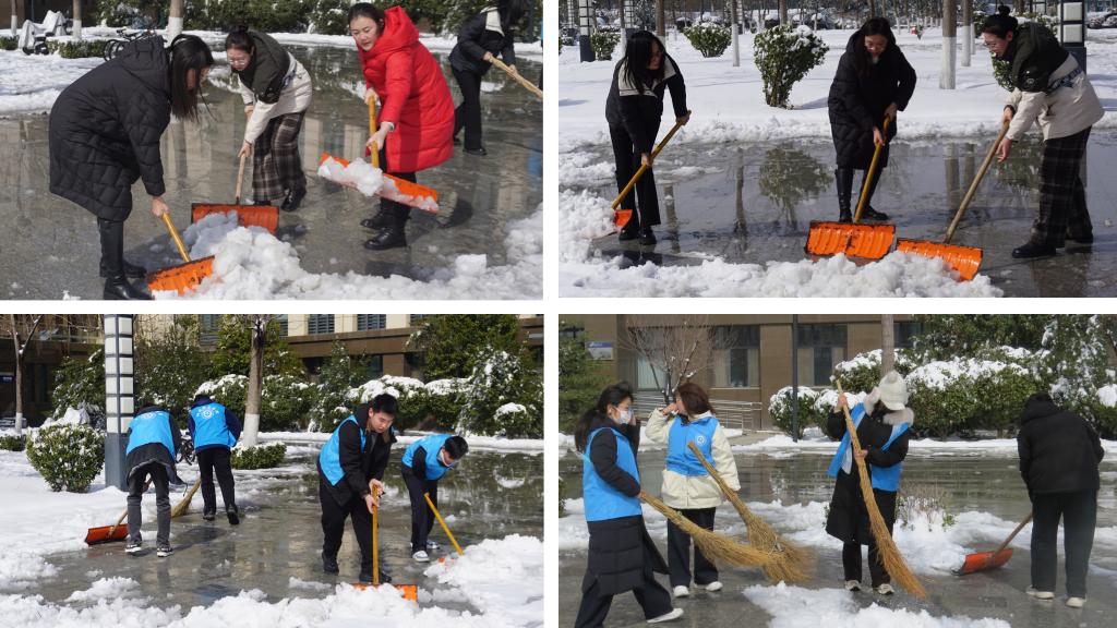 面对积雪带来的出行影响,3月3日上午,在学校统一部署下,财政税务学院迅速反应,组织师生在圣井校区开展校园扫雪除冰志愿服务活动,以实际行动践行雷锋精神,为校园安全出行保驾护航。