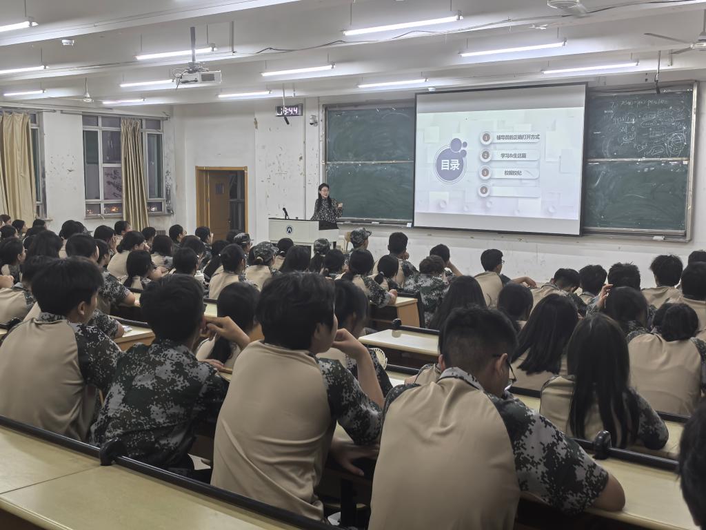 李子云首先对2024级新生的到来表示热烈欢迎,并为新生播放学校宣传片,向新生简单介绍学校、学院基本情况。同时,她从学习方式、个人成长、课余生活、社会实践、职业规划、安全教育等方面对同学们做出介绍和建议。她勉励大家要珍惜大学时光,刻苦学习、全面发展,用奋斗点亮青春色彩。最后,李子云老师提议每位同学给四年后的自己写一封信,同学们满怀着憧憬和希望写下了对四年后自己想说的话与四年的奋斗目标。