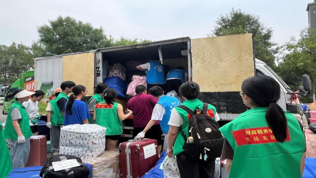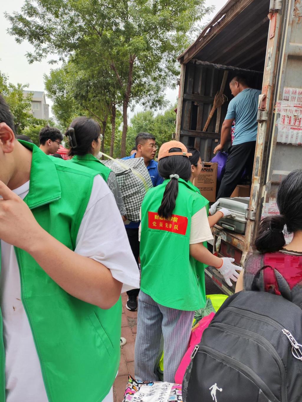在搬运过程中,学生党员、志愿者冲锋在前,接车、组织学生乘车、搬运行李,充分展现了财税学子们积极奉献的精神风貌。他们的身影往返于宿舍与货车之间,形成了一道亮丽的风景线。研究生组成的党员先锋队、志愿者队在舜耕校区积极迎接,热情地向同学们介绍舜耕校区的环境,同学们称,党员、志愿者无微不至的贴心服务让他们领略到学校、学院的温暖关怀,对接下来的校园生活满怀憧憬。