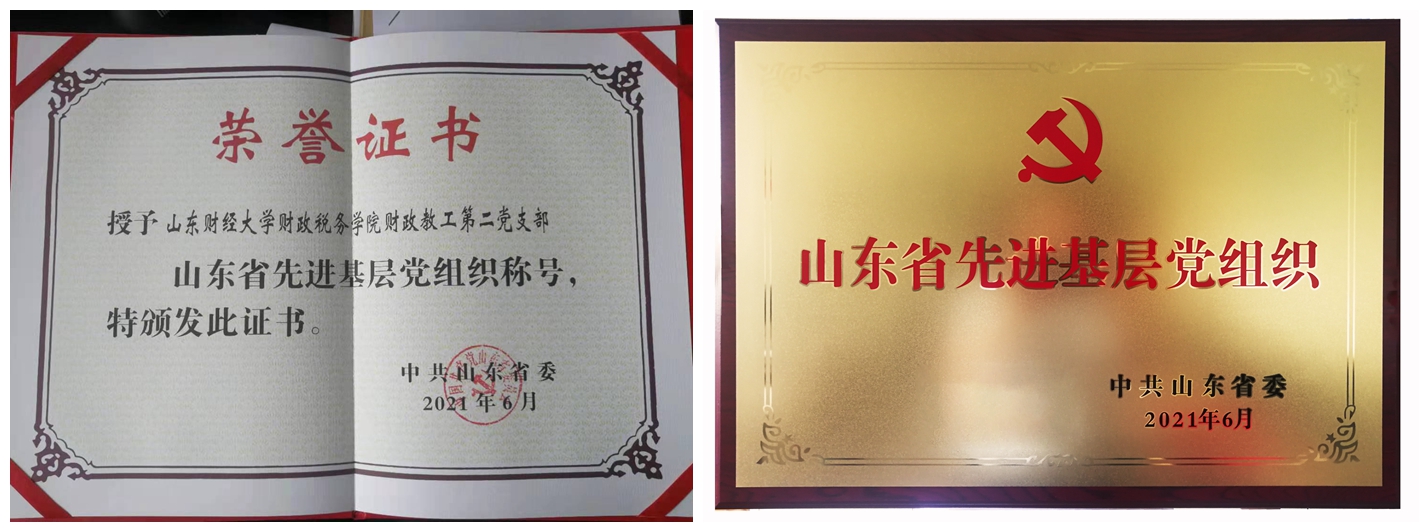 在庆祝党的百年华诞之际,6月29日,我院财政教工第二党支部被中共山东省委授予“山东省先进基层党组织”荣誉称号。