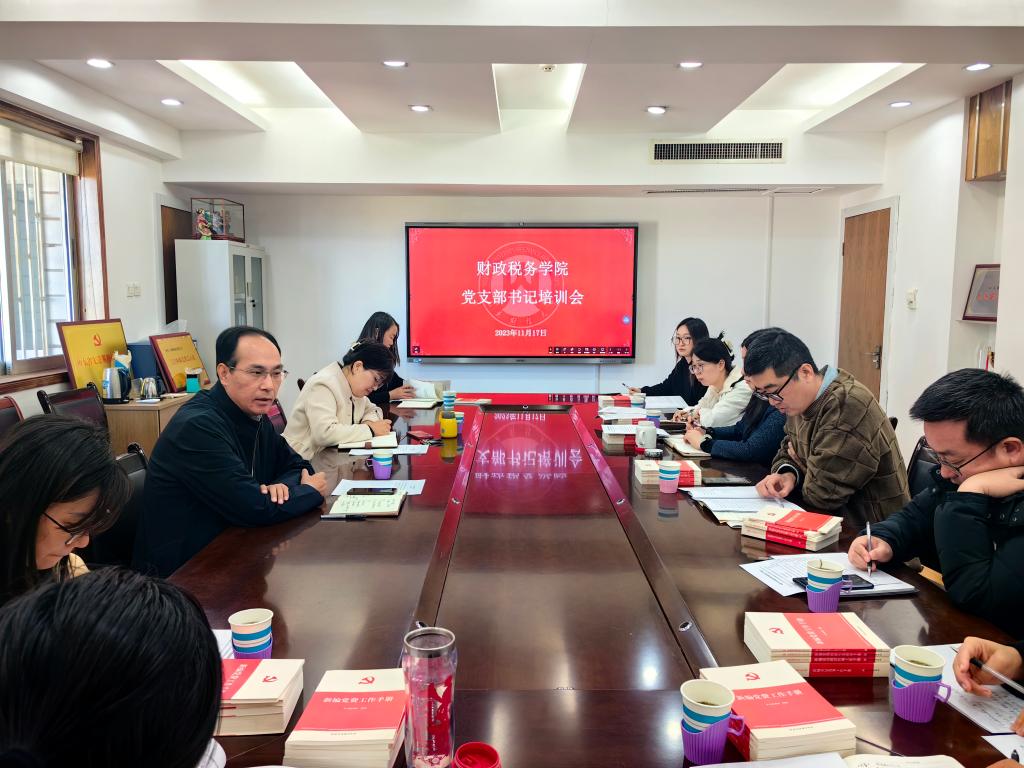为进一步提高学院党支部书记政治素养和履职担当能力,推进党支部标准化规范化建设,11月17日上午,财政税务学院召开党支部书记培训会议。学院党委书记刘波、副书记滕晖出席会议并讲话,全体党支部书记参加此次会议。会议由滕晖主持。