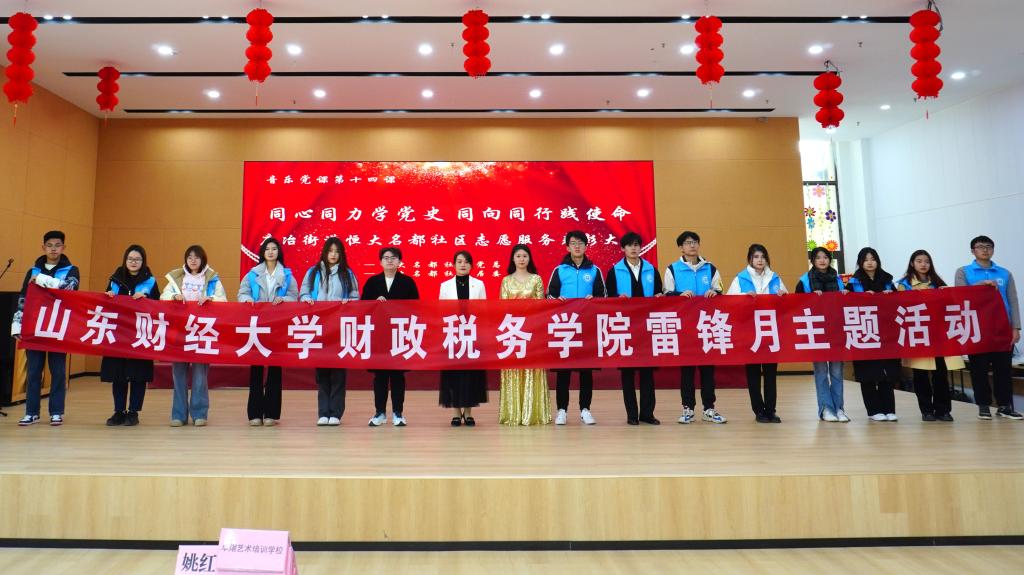 为深入学习雷锋精神,积极响应习近平总书记“弘扬雷锋精神”的号召,3月6日,财税学子走进恒大名都社区志愿服务表彰大会会场,以志愿服务为载体,开展了雷锋月主题活动。在本次大会中,我院荣获“优秀公益合伙人”荣誉称号,展现出志愿者们“螺丝钉”般的积极精神风貌。